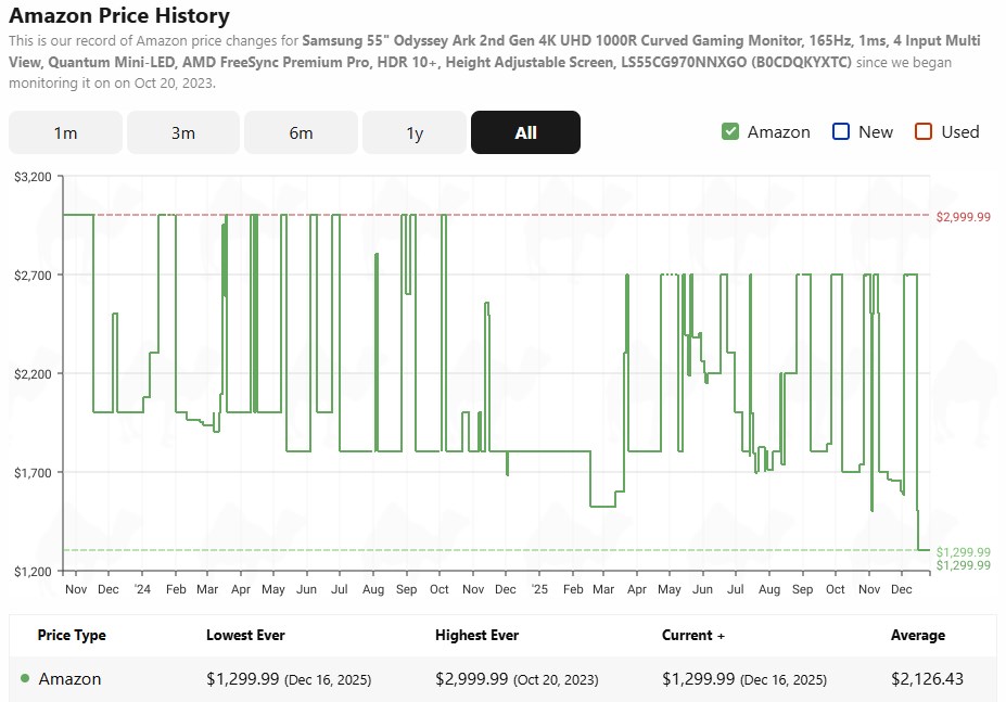 The Samsung Odyssey Ark is a massive 4K gaming monitor, designed for those who want plenty of screen space paired with top-tier visual quality. However, due to its design and features, it also carries a hefty price tag of $2,699.99. But if you were planning to get it for yourself, you’ll be happy to learn that it’s currently listed with a massive 52% discount on Amazon, bringing it down to only $1,299.99. This is a straight $1,400 discount, which is rare to see.