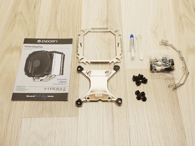 Unboxing the cooler reveals the essential mounting hardware and clear instructions, without unnecessary parts included. The only item worth mentioning is the syringe of premium Pactum PT-3 thermal paste, with enough amount for at least three applications. The provided mounting hardware supports a broad spectrum of CPU sockets, rendering the Fortis 5 Dual Fan compatible with several Intel (20xx / 1700 / 1200 / 115x) and AMD (AM5 / AM4) processors.