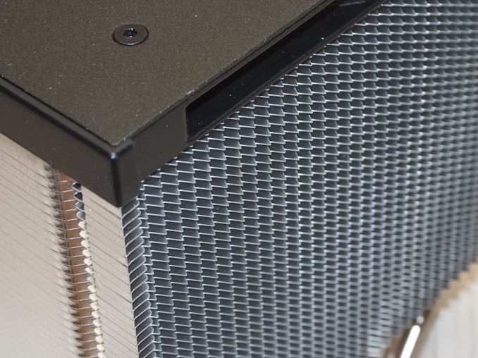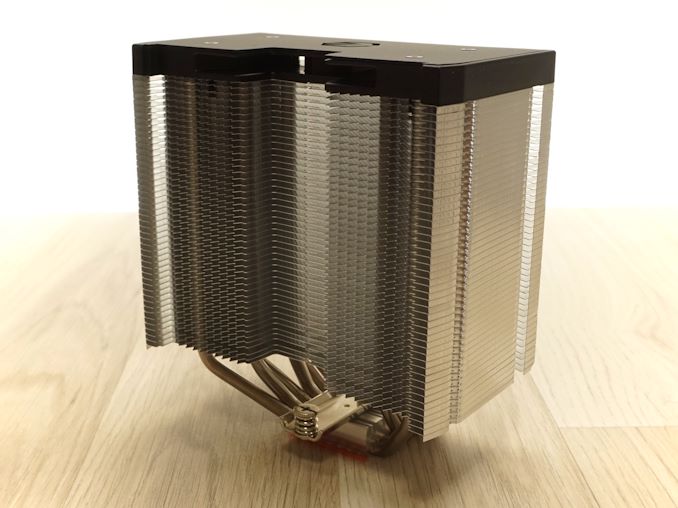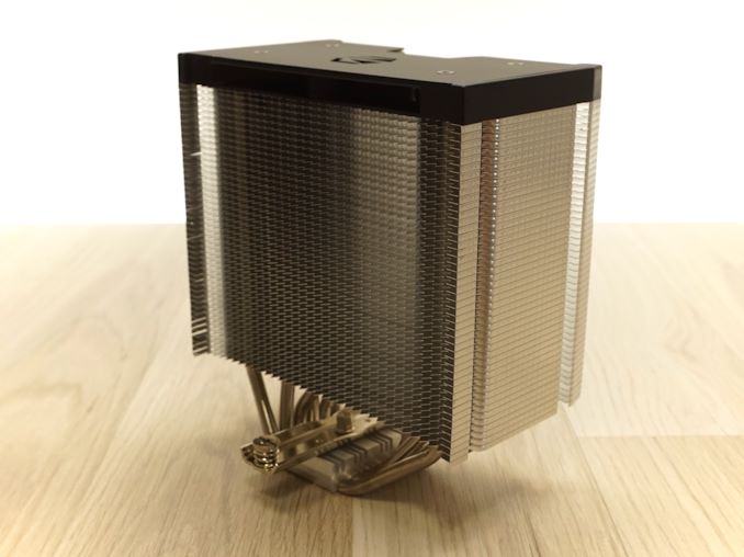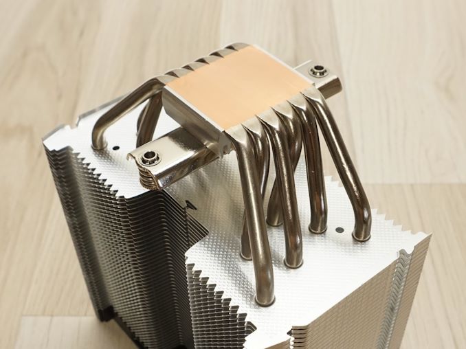 The base of the Fortis 5 is relatively simple, with most of the body made out of aluminum and a steel brace mounted at its top. The body provides the mechanical strength needed to hold the copper heatpipes together, which are formed to come into direct contact with the CPU. The aluminum part of the base has fins that form a tiny heatsink but will do very little compared to the entirety of the tower. We can notice that the base is shifted towards one side of the tower, which is meant to move the tower away from the RAM slots.
