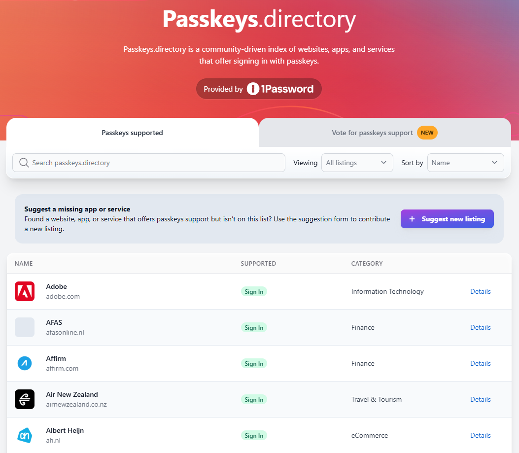 Do also take a look at the “Vote for passkeys support” tab and if you see a brand that really should be there, make your voice heard. Hey, here’s a good one to start voting for: