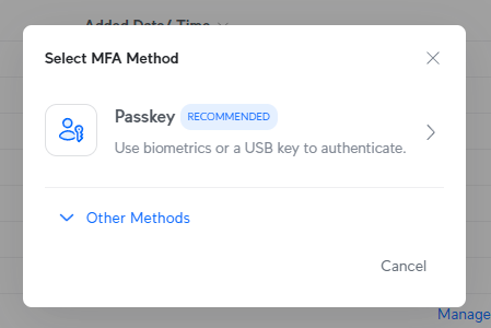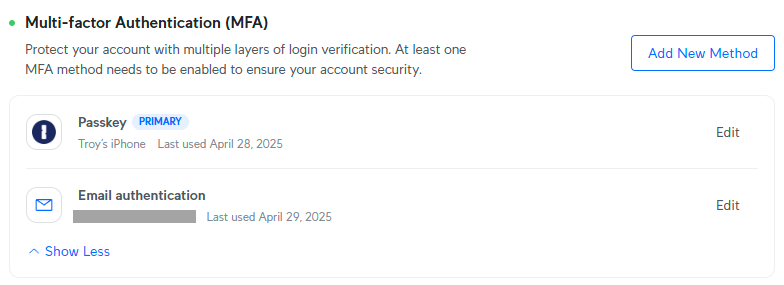 I don’t want email authentication because that involves sending a code to my email address and, well, we all know what happens when we’re relying on people to enter codes into login forms 🤔 So, let’s now walk through the Ubiquiti process and add another passkey as a second factor: