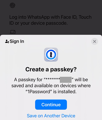 That last point can be very device-specific and very user-specific. Because I have an iPhone, WhatsApp is suggesting I save the passkey into my iCloud Keychain. If you have an Android, you’re obviously going to see a different message that aligns to how Google syncs passkeys. Choosing one of these native options is your path of least resistance – a couple of clicks and you’re done. However…