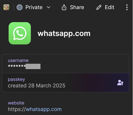 Because of this, I’m given the option to store my WhatsApp passkey directly there: