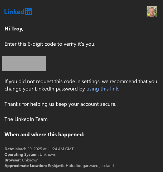 I already had two-step verification enabled on LinkedIn, but as evidenced in my own phishing experience, this isn’t always enough. (Note: the terms “two-step”, “two-factor” and “multi-factor” do have subtle differences, but for the sake of simplicity, I’ll treat them as interchangeable terms in this post.)