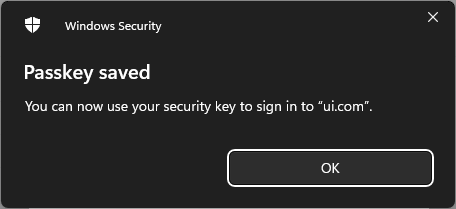 And a moment later, my digital passkey has been saved to my physical U2F key:
